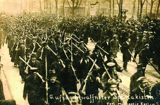 Κατά τους πρώτους μήνες μετά την εκθρόνιση του Κάιζερ Γουλιέλμου Β’, στη Γερμανία επικρατεί χάος. Στις 5 Ιανουαρίου του 1919 εκδηλώνεται η εξέγερση της αντιπολεμικής ομάδας των «Σπαρτακιστών» στο Βερολίνο, με ηγέτες τον Karl Liebknecht (Καρλ Λίμπκνεχτ) και τη Rosa Luxemburg, προερχόμενοι από τα αριστερά των διαιρεμένων Σοσιαλδημοκρατών (SPD). Ομάδες ριζοσπαστικοποιημένων εργατών στηρίζουν την κίνηση. Η εξέγερση πνίγεται στο αίμα. Η προσωρινή κυβέρνηση χρησιμοποίησε ειδικές ομάδες, τις λεγόμενες Freicorps (ελεύθερα σώματα), προερχόμενες από τον αποδεκατισμένο αυτοκρατορικό στρατό. H επιχείρηση κράτησε μόλις μία εβδομάδα και κατέληξε με την άγρια δολοφονία της Luxemburg και του Liebknecht από τους παρακρατικούς.