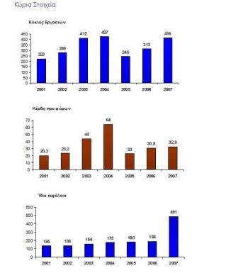 Τα ετήσια κέρδη της κυμαίνονται στα 20-30 εκατ. ευρώ ετησίως με εξαίρεση το 2004 με τη συγκυρία των Ολυμπιακών Αγώνων, που τα κέρδη της ανυψώθηκαν στο ποσό των 64 εκατ. ευρώ. Στο σημείο αυτό είναι ενδιαφέρον για την κατανόηση των κεφαλαίων αυτών να συγκρίνει κανείς τα κεφάλαια αυτά με εθνικά κεφάλαια ή κοινοτικά π.χ. με την κοινοτική πρωτοβουλία Urban II , η οποία ήταν της τάξης των 42 εκατ ή το πρόγραμμα LeaderII (2000-2006) που ανήλθε στα 180 εκατ. ευρώ, περίπου όσα τα κέρδη της εταιρείας στη διάρκεια έξι χρόνων (Ηλ. διεύθυνση ΥΠΕΧΩΔΕ και ηλεκτρονική διεύθυνση εταιρείας).