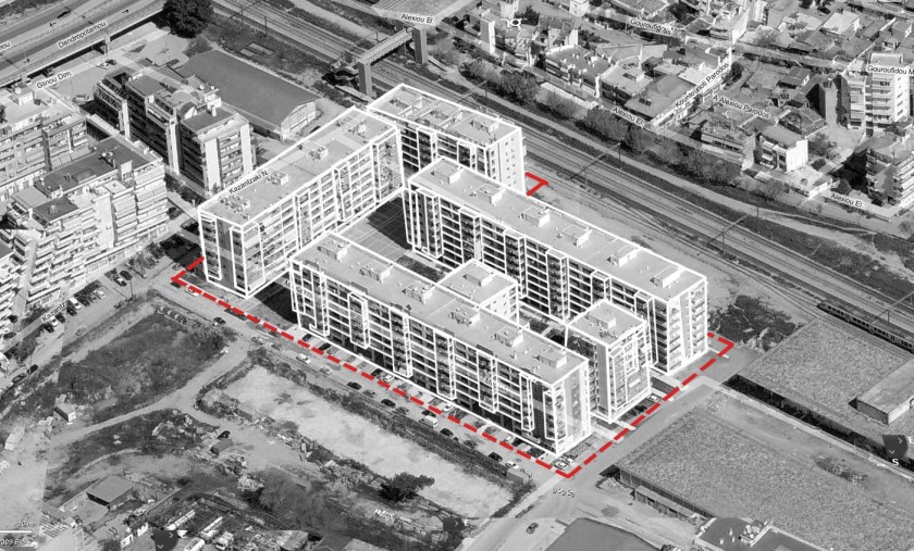 Ο δήμος το 2005, ενώ έχει ξεκινήσει η κατασκευή, προσπαθεί να ενεργοποιήσει το διάταγμα του ΄83 για την περιοχή ανάπλασης, τους χαμηλούς όρους δόμησης και την εισφορά σε γη από μέρους των ιδιοκτητών. Παρόλα αυτά, η εταιρεία καταφέρνει να μην ακολουθήσει τους σχετικούς όρους δόμησης και χτίζει με βάση το σχέδιο πόλης του ΄66, όπως και όλοι οι υπόλοιποι μικροί εργολάβοι που δραστηριοποιούνται στην περιοχή. Η εισφορά σε γη κατά 40% της συνολικής επιφάνειας παρακάμπτεται, πράγμα σύνηθες για το ελληνικό τοπίο. Στην κατεύθυνση αυτή, αντί για την εισφορά 13.105 τ.μ. από το σύνολο της επιφάνειας 28.397 τ.μ., προτείνεται και τελικά πραγματοποιείται η εισφορά 2.300 τμ., η ανέγερση νηπιαγωγείου και ο επανασχεδιασμός των ακαλύπτων με τρόπο εξωστρεφή, ώστε να εξασφαλίζεται δημόσιος χώρος για όλη τη γειτονιά.