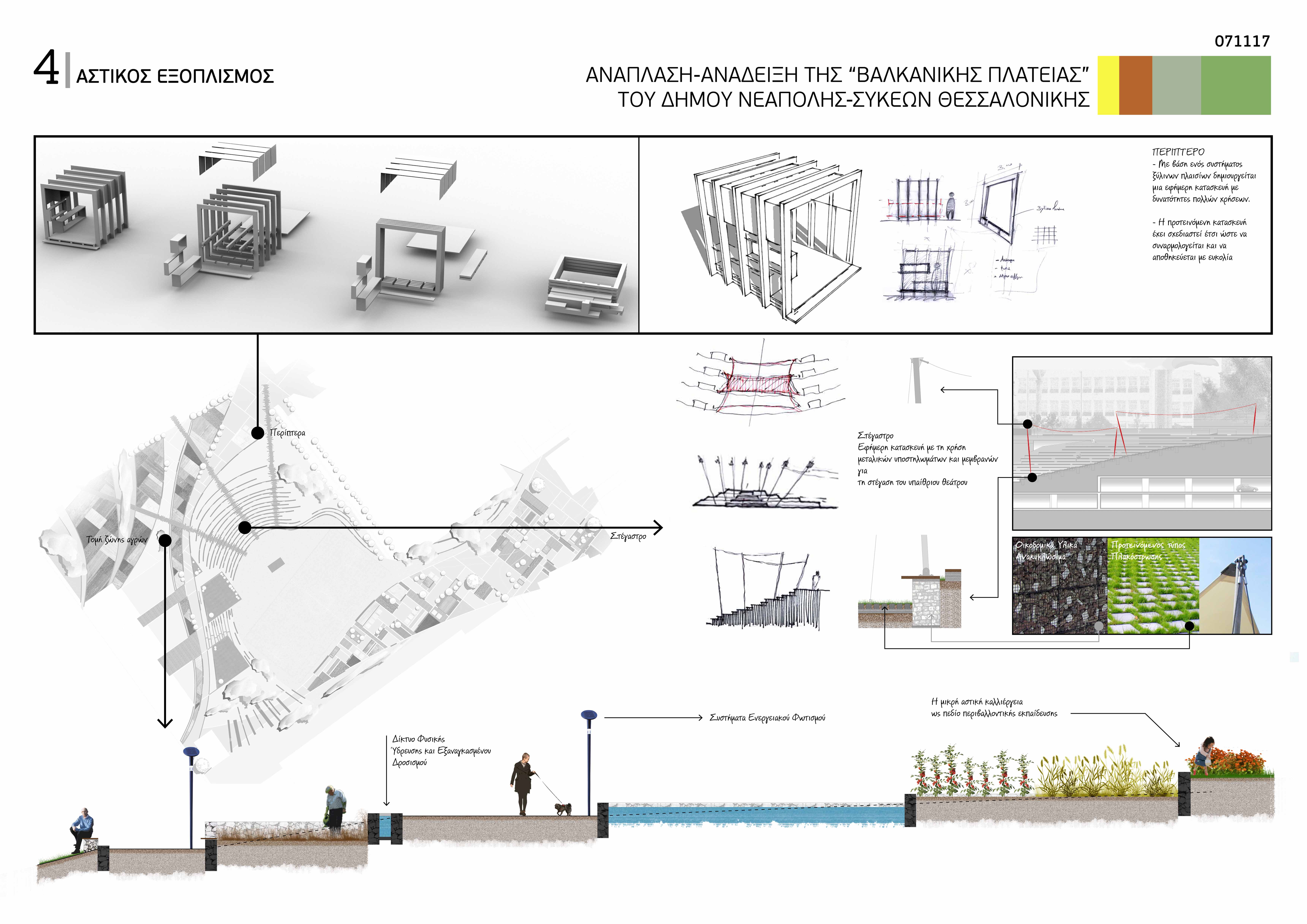 Η μελέτη που παρουσιάζεται εδώ απέσπασε διάκριση (δεύτερη εξαγορά) στον αρχιτεκτονικό διαγωνισμό ιδεών για την ανάπλαση – ανάδειξη της «Βαλκανικής Πλατείας» του Δήμου Νεάπολης- Συκεών. Το ζητούμενο ήταν η εκπόνηση συνολικών προτάσεων για ένα δημόσιο χώρο που να ικανοποιεί τις ανάγκες των κατοίκων της περιοχής αλλά και των πολιτιστικών εκδηλώσεων της «Βαλκανικής Πλατείας.» Η πρόταση επιχειρεί μια πολυεπίπεδη επίλυση των σύνθετων προδιαγραφών του διαγωνισμού.