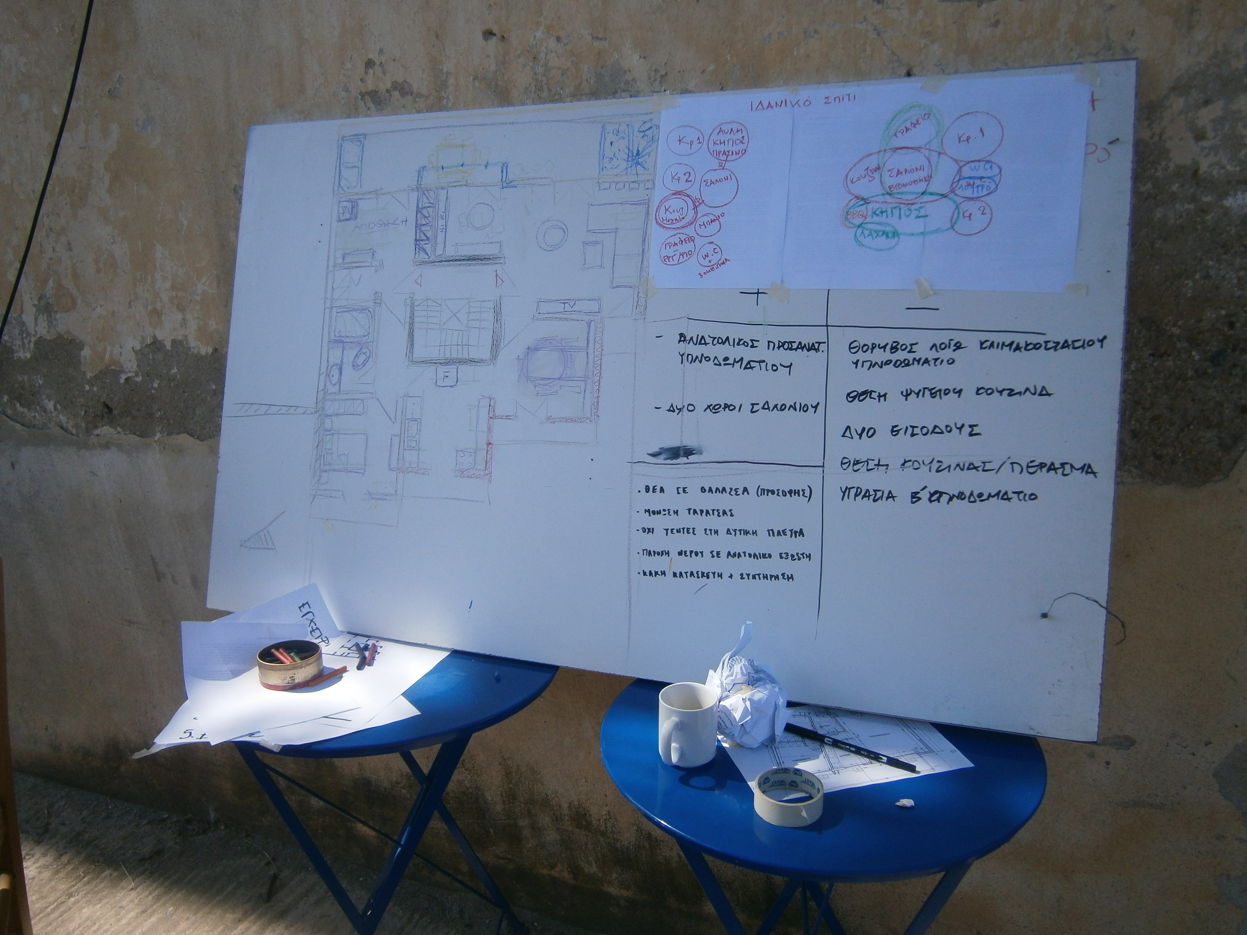 Το μεσημέρι του Σαββάτου πραγματοποιήθηκε το εργαστήριο συμμετοχικού σχεδιασμού, με εισηγητή τον Χρήστο Ελευθεριάδη, αρχιτέκτονα που δραστηριοποιείται στην Αργεντινή. Στο εργαστήριο παρουσιάστηκε η μέθοδος που έχει συντάξει ο Αργεντινός αρχιτέκτονας Rodolfo Livingston και που χρησιμοποιείται ευρύτατα σε διάφορες χώρες της λατινικής Αμερικής. Ένα σύστημα που χρησιμοποιεί συνεντεύξεις και διαδραστικά παιχνίδια προκειμένου να διαγνώσει τις ανάγκες και της επιθυμίες μιας οικογένειας και να σχεδιαστεί από κοινού με αυτήν η κατοικία της. Στη συνέχεια έγινε εφαρμογή – εξομοίωση του διαγνωστικού μέρους της μεθόδου πάνω σε ζευγάρι που διαλέχτηκε από το κοινό, από εθελοντές που και αυτοί προέρχονταν από το κοινό, οι οποίοι πήραν ζωντανά τις συνεντεύξεις σύμφωνα με τη μέθοδο.