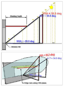 Η ενεργειακή απόδοση της όψης, από τη στιγμή που τη θεωρούμε δείκτη και εργαλείο κατάλληλου σχεδιασμού, εξαρτάται χοντρικά από δύο παράγοντες: α. το υλικό της και β. από τον ήλιο που δέχεται πάνω της. Με το υλικό της (τα U-value) ασχολείται ο ΚΕΝΑΚ, οπότε δε θα ασχοληθούμε εδώ. Αυτός λοιπόν ο ήλιος έχει ένταση και προσανατολισμό – δηλαδή γεωμετρία, που διαφοροποιούνται στο χρόνο με τρόπο γενικά γνωστό εδώ και χιλιετηρίδες. Επομένως, μπορούν να υπολογιστούν π.χ τα μέγιστα μεγέθη προσπίπτουσας ηλιακής ακτινοβολίας για το καλοκαίρι για μια στάνταρ όψη συγκεκριμένου προσανατολισμού. Κατόπιν μπορούν να καθοριστούν τα μέγιστα επιτρεπτά όρια αυτής της ενέργειας. Ο ορισμός αυτού του κρίσιμου σημείου μπορεί να καθοριστεί και από το ετήσιο διάγραμμα μέσης κατανάλωσης ηλεκτρικής ενέργειας, ώστε να καθοριστεί σε ποιες περιόδους έχουμε μέγιστη κατανάλωση, δηλαδή υπερθέρμανση του κτιρίου. Εφόσον εντοπιστεί η χρονική περίοδος στην διάρκεια της οποίας θέλουμε να προστατεύσουμε το κτίριο από την υπερθέρμανση, μπορούμε να προχωρήσουμε σε καθορισμό των ανεπιθύμητων γωνιών του ήλιου ανά προσανατολισμό.