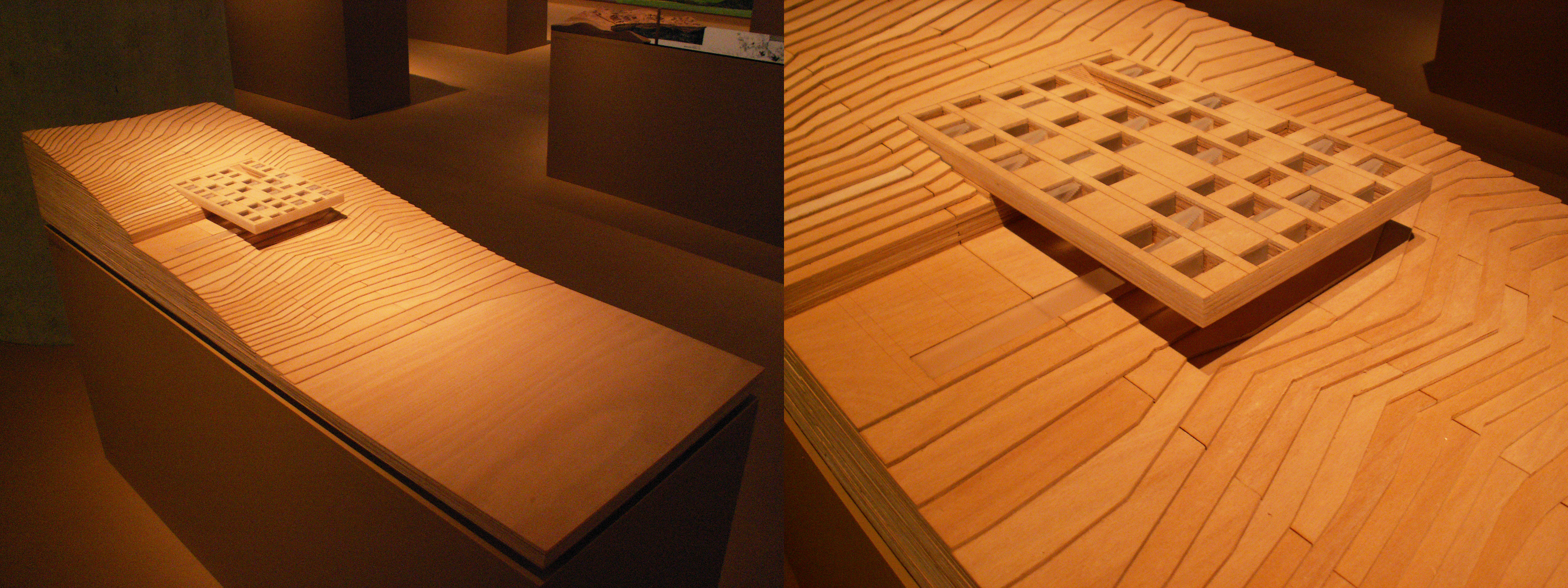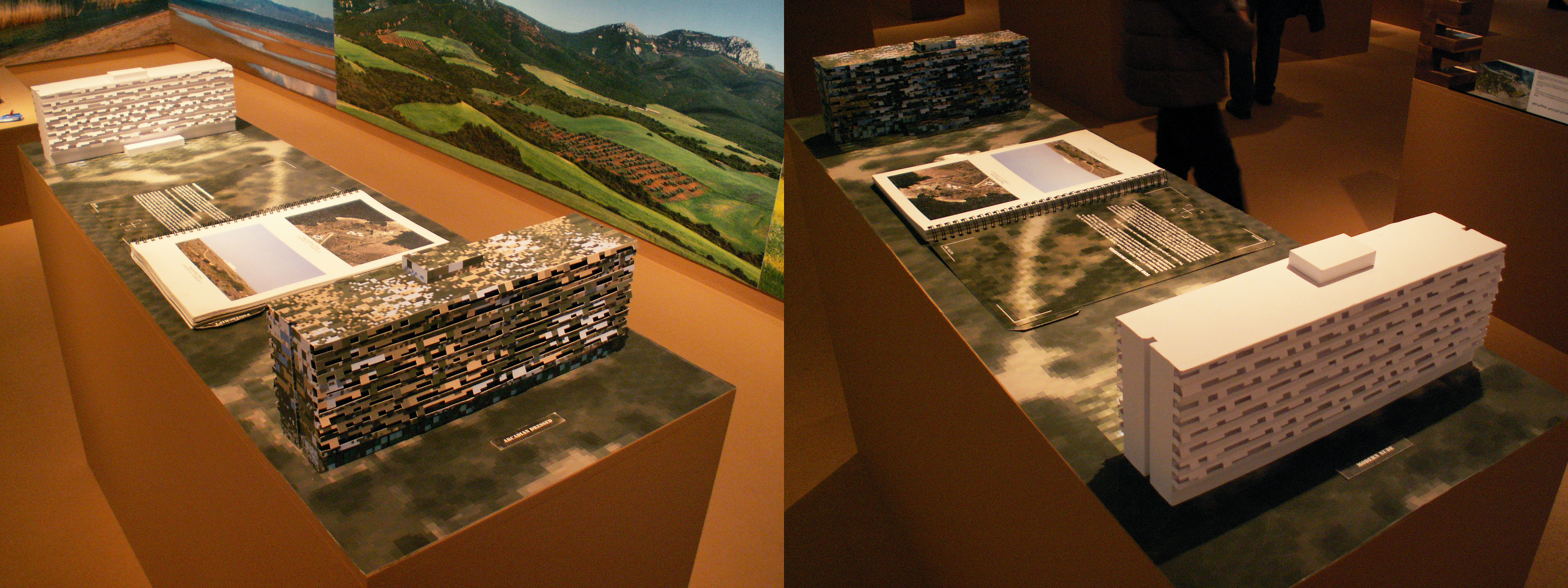 Αλλά εκτός από τη διαφοροποίηση στην έκταση, υπάρχει έλλειψη ισοτιμίας και στην ίδια τη μορφή του περιεχομένου των δύο πλευρών. Από τη μια έχουμε τη χρήση εύπεπτων εντυπωσιακών εικόνων υπαρκτών κτιρίων ή φωτορεαλιστικών και φωτογραφιών σαγηνευτικών τοπίων, ενώ από την άλλη υπάρχει μια πιο αφαιρετική και μεστή αρχιτεκτονική γλώσσα. Η δεύτερη όμως, παρά το ενδιαφέρον και την ευρηματικότητά της, απευθύνεται αναπόφευκτα σε πιο μυημένους και μερικές φορές καθίσταται ερμητική χωρίς την ύπαρξη επεξήγησης μέσω κειμένου ή άλλου υλικού, το οποίο μπορεί μάλλον να βρεθεί στο βιβλίο-κατάλογο της έκθεσης ή στην ιστοσελίδα της. Έτσι κανείς νιώθει ότι εγκαταλείπεται μια αίσθηση έλλειψης ενός συγκεκριμένου έντονου επιχειρήματος από πλευράς των συντελεστών της συμμετοχής και μιας διάθεσης να “μιλήσουν τα έργα από μόνα τους”, και αντί αυτών εμφανίζεται μια σύγκρουση με νικητές και νικημένους.