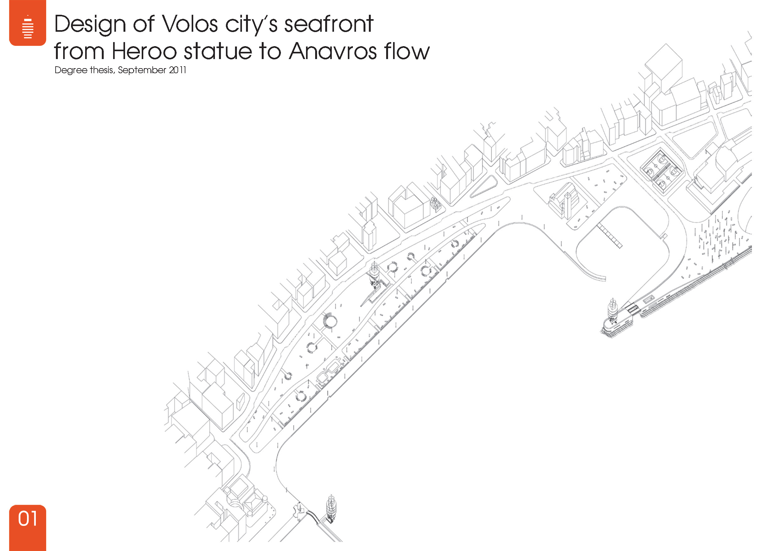 Η παρούσα διπλωματική εργασία επιχειρεί την ανάπλαση και ενοποίηση του παραλιακού μετώπου του Βόλου μεταξύ του αγάλματος Ηρώου/ κτιρίου του πανεπιστημίου (Παπαστράτος) και του χειμάρρου Αναύρου. Σε αυτή περιλαμβάνονται το πάρκο του Αγίου Κωνσταντίνου, οι εγκαταστάσεις του ξενοδοχείου Ξενία και το πάρκο του Αναύρου.