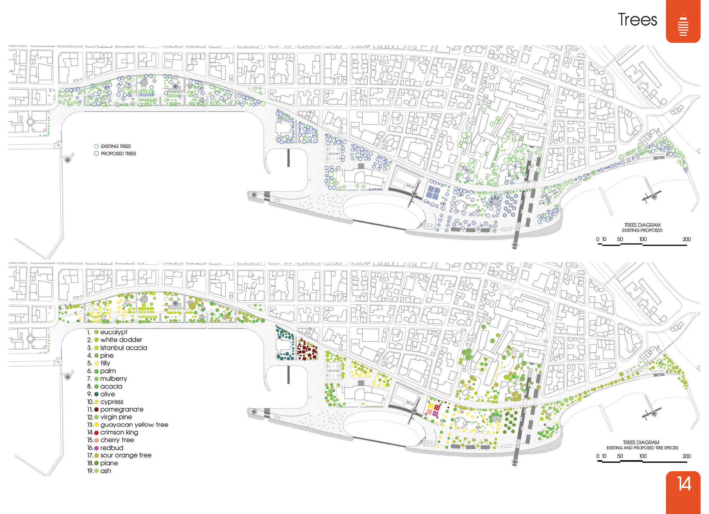 Σε επόμενο επίπεδο αποφασίζεται η κάλυψη του συνόλου της περιοχής με ένα χαρακτηριστικό ενιαίο δάπεδο. Κάτι τέτοιο επιτυγχάνει την υφολογική και εμπειρική ενοποίηση της. Το δάπεδο αυτό διαχέεται και στους δρόμους που ξεκινούν από τα όρια του νέου πάρκου εντείνοντας τη συνέχεια του με το υπόλοιπο αστικό σύστημα. Παράλληλα οι χώροι πρασίνου ενισχύονται και ενοποιούνται σε μεγάλα καθαρά σύνολα και τα οποία τη διατρέχουν σε όλο το μήκος της.