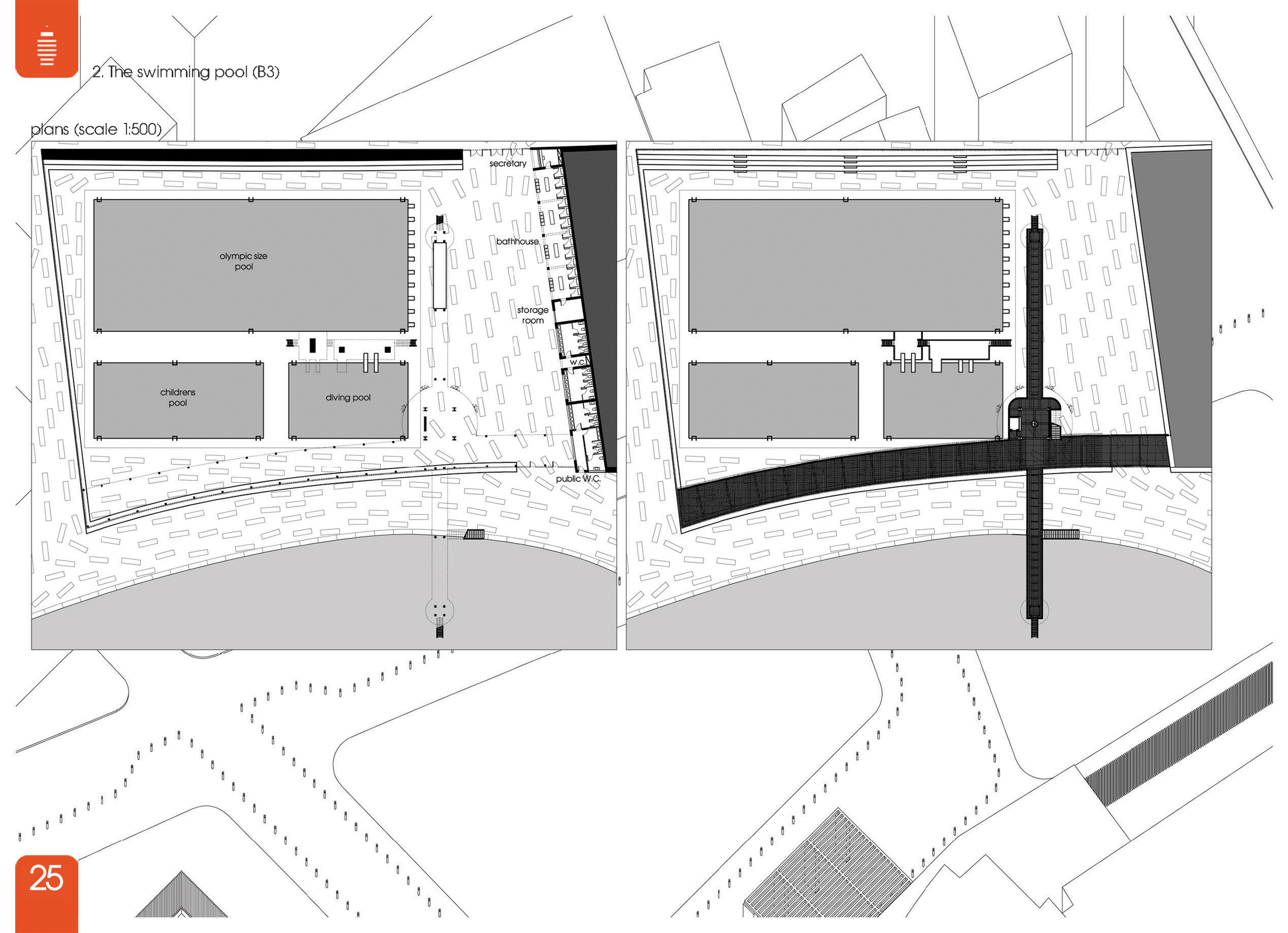 3) Ανοιχτό δημόσιο κολυμβητήριο με πισίνα ολυμπιακών διαστάσεων και καταδύσεων καθώς και δημόσιες τουαλέτες. (Β3)
