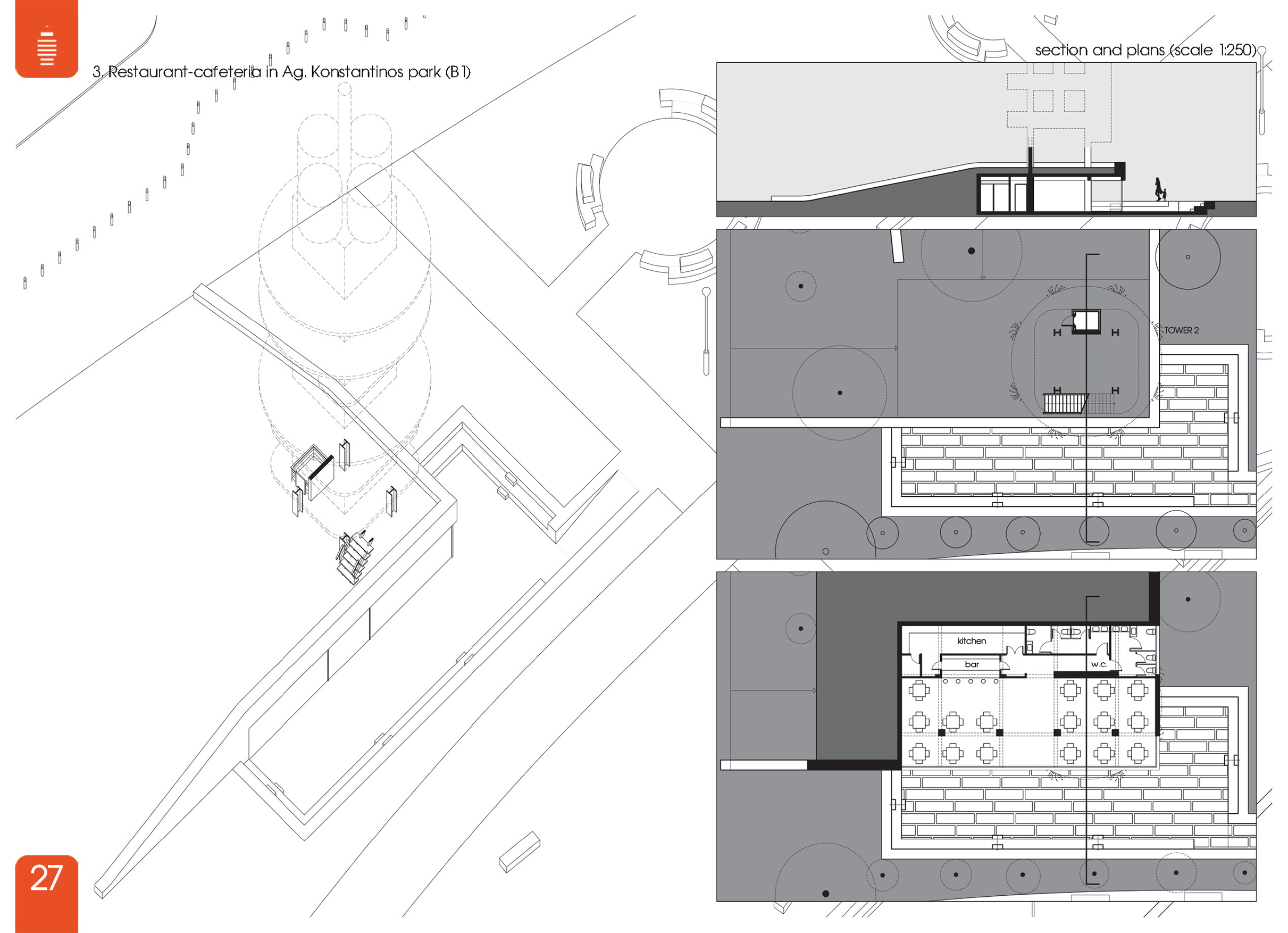 1) Εστιατόριο-καφετέρια στο πάρκο του Αγ. Κωνσταντίνου ως «βάθρο» του πύργου 2. (Β1)