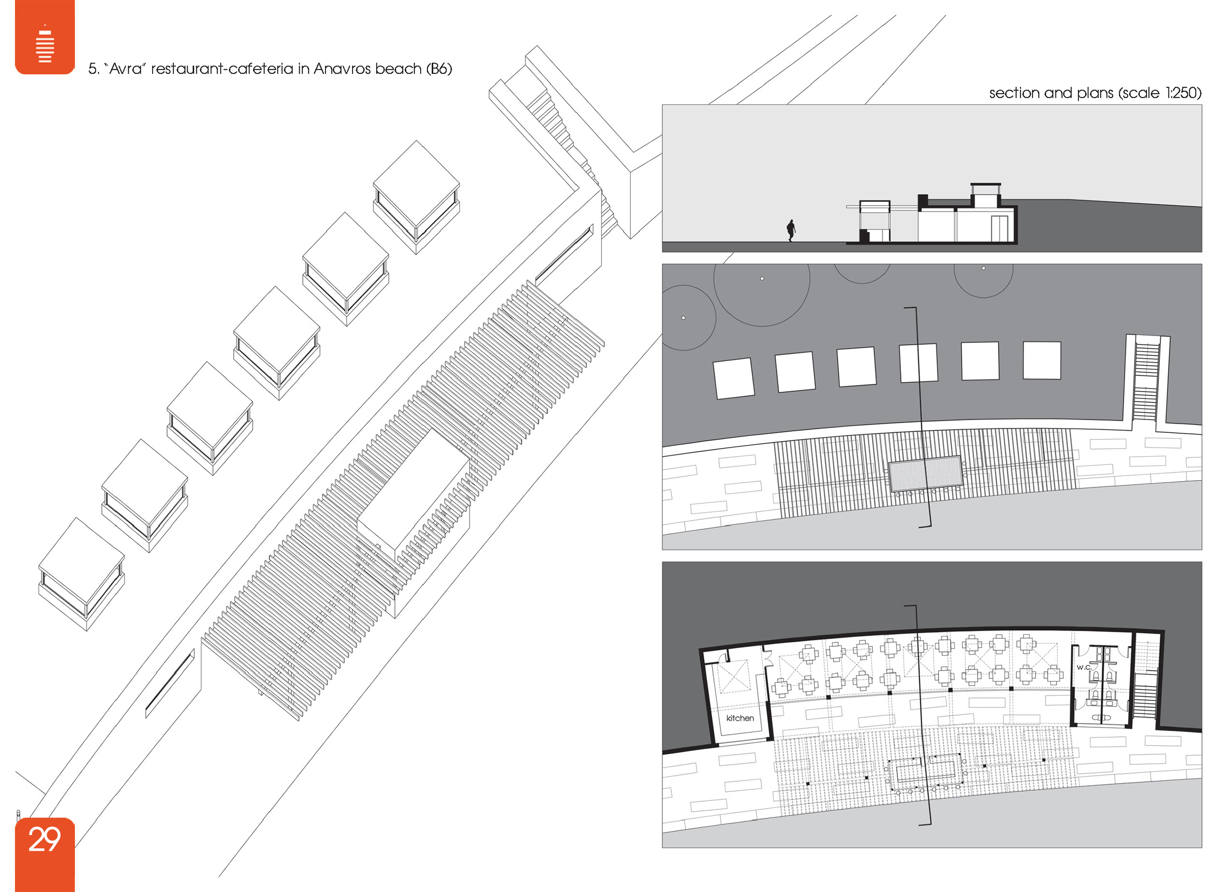6) Νέο κτίριο στο οποίο στεγάζεται η λειτουργία του εστιατορίου «Αύρα», χαρακτηριστικό τοπόσημο της πόλης. (Β6)