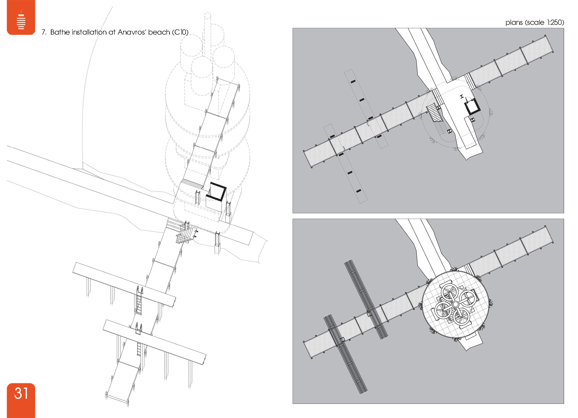 10) Μια εγκατάσταση μπάνιου σε έναν κυματοθραύστη της παραλίας του Αναύρου από επιπλέουσες πλατφόρμες και υπερυψωμένες επιφάνειες για βουτιές. (C10)