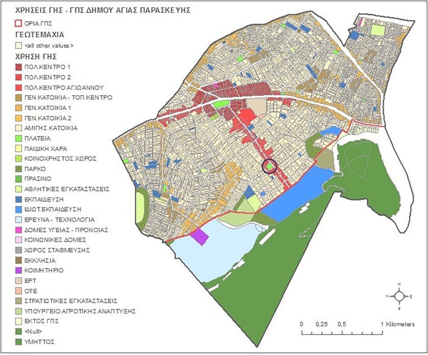 Όπως φαίνεται και στην εικόνα με το ΓΠΣ του Δήμου, η πλατεία του Αϊ Γιάννη, αποτελεί τον μοναδικό δημόσιο χώρο στη μισή σχεδόν πόλη κάτω νοτίως της Μεσογείων. Η λεωφόρος Μεσογείων τεμαχίζει την πόλη, καθιστώντας πολεοδομικό της κέντρο, τον άξονα της Αγίου Ιωάννου μεταξύ της κεντρικής πλατείας (κάτω πλατείας) και της πλατείας του Αϊ Γιάννη (πάνω πλατείας). Ο υπερτοπικός ρόλος τόσο της πλατείας όσο και της οδού Αγίου Ιωάννου είναι δεδομένος εδώ και δεκαετίες, καθώς φιλοξενεί μεγάλα εμπορικά καταστήματα, κέντρα εστίασης και διασκέδασης που σαφέστατα δεν απευθύνονται μόνο στους δημότες. Άλλωστε, η Αγία Παρασκευή αποτελούσε ανέκαθεν ένα κέντρο που προσέλκυε κατοίκους κυρίως από την Ανατολική Αττικής και τα Μεσόγεια όσο και από άλλους γειτονικούς Δήμους όπως ο Χολαργός, κυρίως για δραστηριότητες εμπορίου και αναψυχής αλλά και για άλλες όπως π.χ. φροντιστήρια και δημόσιες υπηρεσίες.