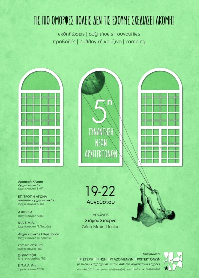 Σας καλούμε όλες και όλους, αρχιτεκτόνισσες, αρχιτέκτονες και μη, να ενισχύσετε την 5η Συνάντηση που θα λάβει χώρα από το Σάββατο 19 Αυγούστου έως και την Τρίτη 21 Αυγούστου στον ξενώνα Στάμου Στούρνα στην Άλλη Μεριά Πηλίου.