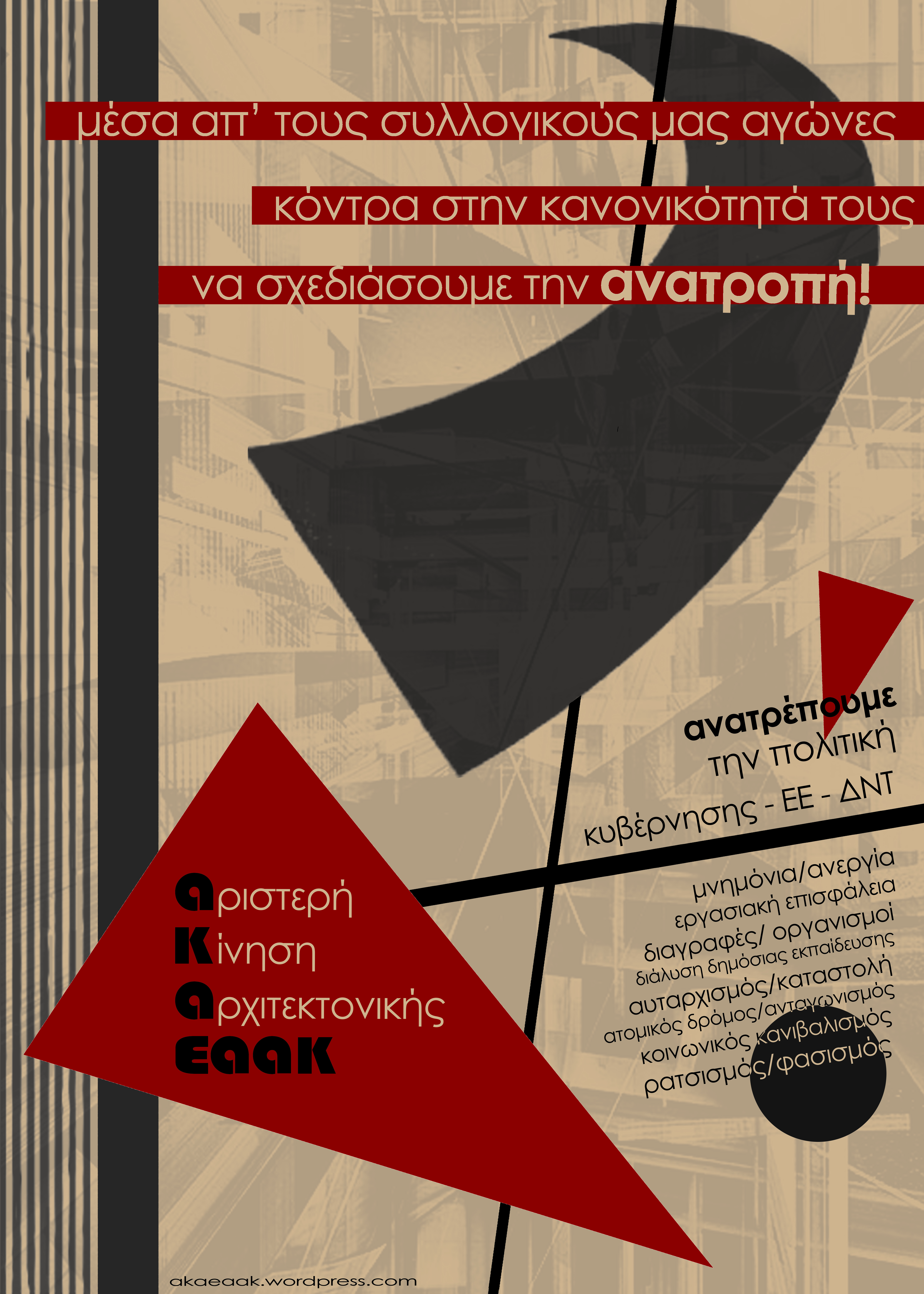Τα αποτελέσματα στους φοιτητικούς συλλόγους των αρχιτεκτονικών σχολών παρουσιάζουν σε έναν βαθμό αντιστροφή αυτής της κατάστασης, με αύξηση ή σταθεροποίηση της συμμετοχής και με άνοδο των δυνάμεων της ΕΑΑΚ. Πλέον τα σχήματα ΕΑΑΚ είναι πρώτη δύναμη σε τέσσερις από τις πέντε σχολές παρέμβασης.
