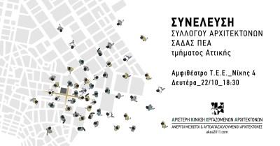 Την Τετάρτη 30 Οκτωβρίου, στις 6:00μμ, διεξάγεται στο αμφιθέατρο του ΤΕΕ (Νίκης 4, Σύνταγμα), η Γενική Συνέλευση του ΣΑΔΑΣ Αττικής με τα παρακάτω θέματα: